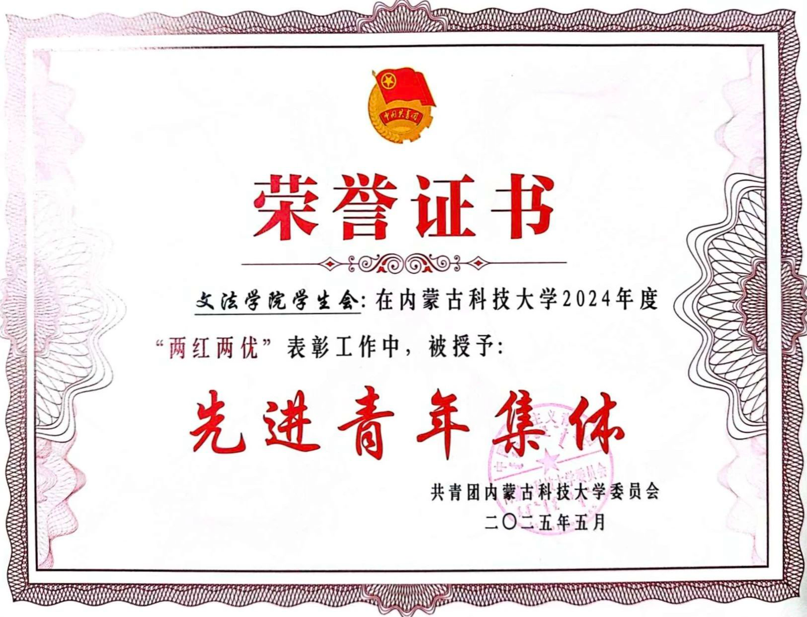 入选五四先进青年集体