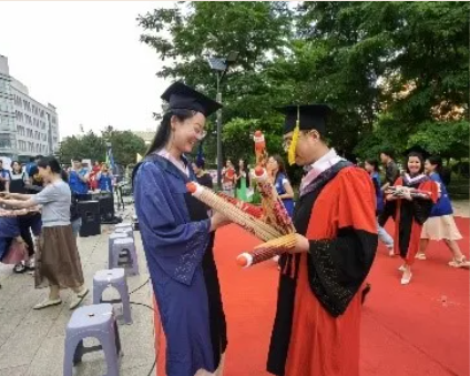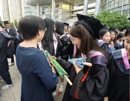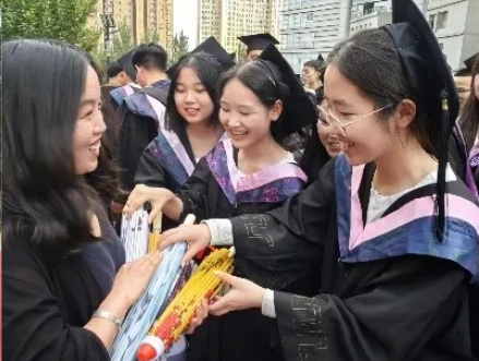 老师们将象征着关爱和呵护的伞送给大家,希望大家未来的日子里生活顺利,不受困苦。这也体现了学院对毕业生最美好的祝福,希望毕业生们不负嘱托,努力奋斗,在人生的道路上不断前行。当那精心准备的礼物传递到毕业生的手中,也意味着典礼逐渐走向尾声。但这并不是终点,而是一个新的起点。