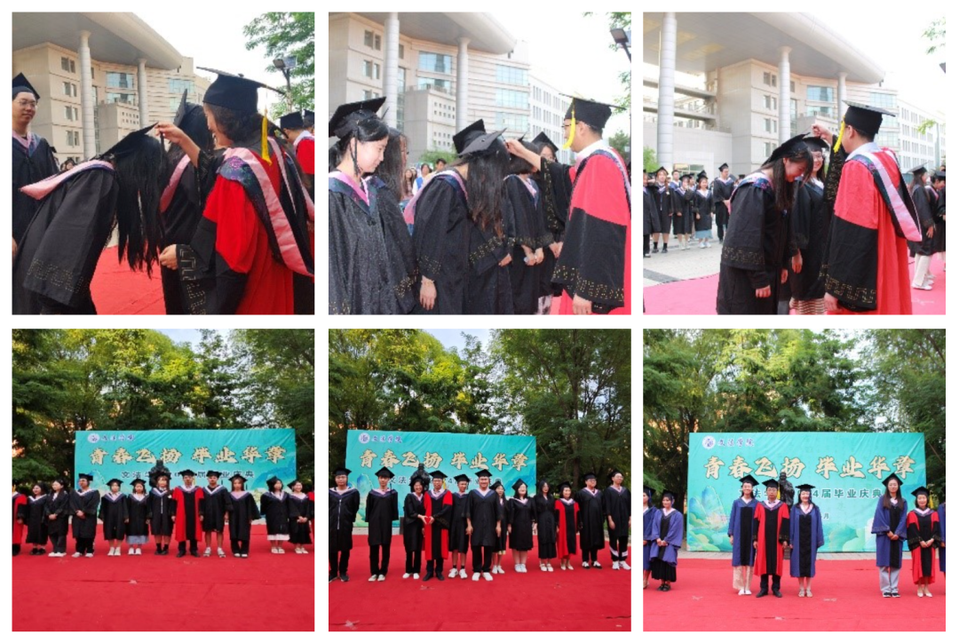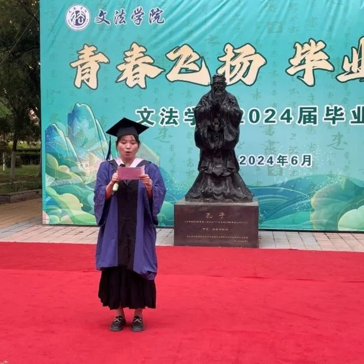 典礼开始学院院长王力平致辞,用饱含深情又坚强有力的话语,激励着即将踏上新征程的学子们。每一句嘱托,都是对过去岁月的总结,更是对未来生活的指引;本科生代表优秀共产党员社会工作专业原源同学代表全体毕业生向母校和辛勤耕耘的老师们致以最崇高的敬意和最诚挚的感谢;硕士毕业生代表优秀毕业生王聪慧表达了自己对母校深深的感恩、感念、感怀之情,以及开启人生新的篇章的期许。
