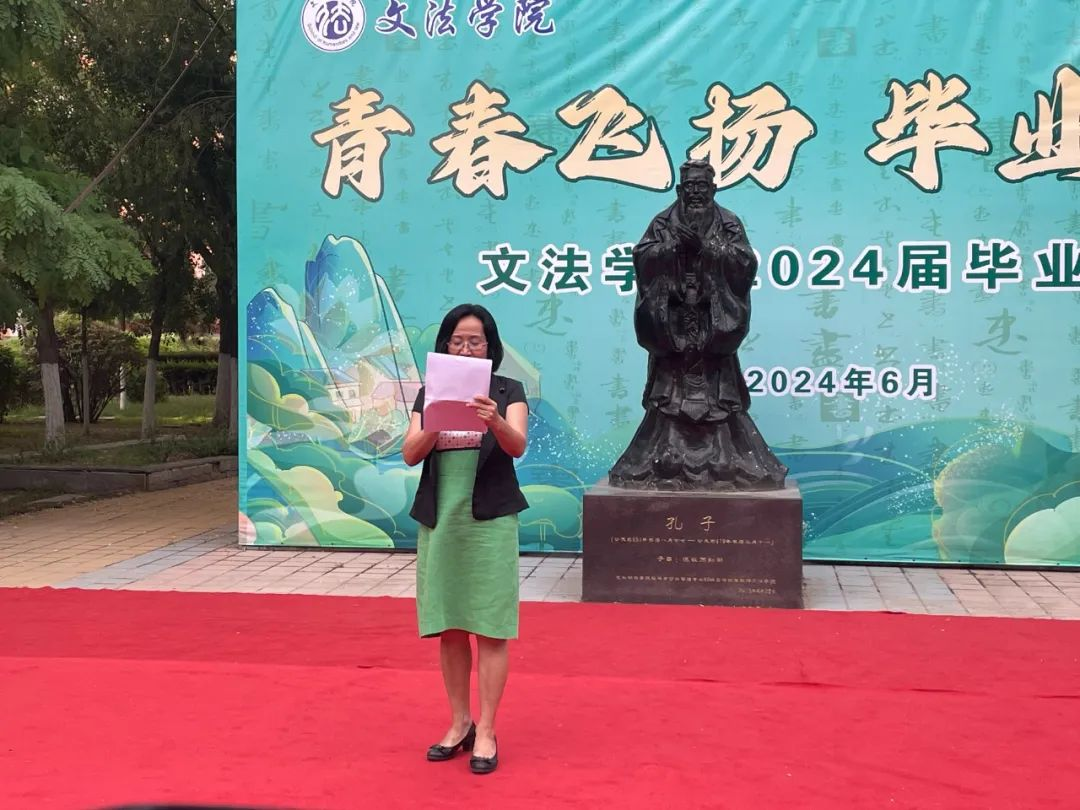 2024年6月19日下午5:30,yl23455永利集团2024届学生毕业庆典活动在秋实楼孔子像前举行。学院领导以及全体辅导员和毕业班班主任参加,党委副书记兼副院长孙静主持典礼仪式。