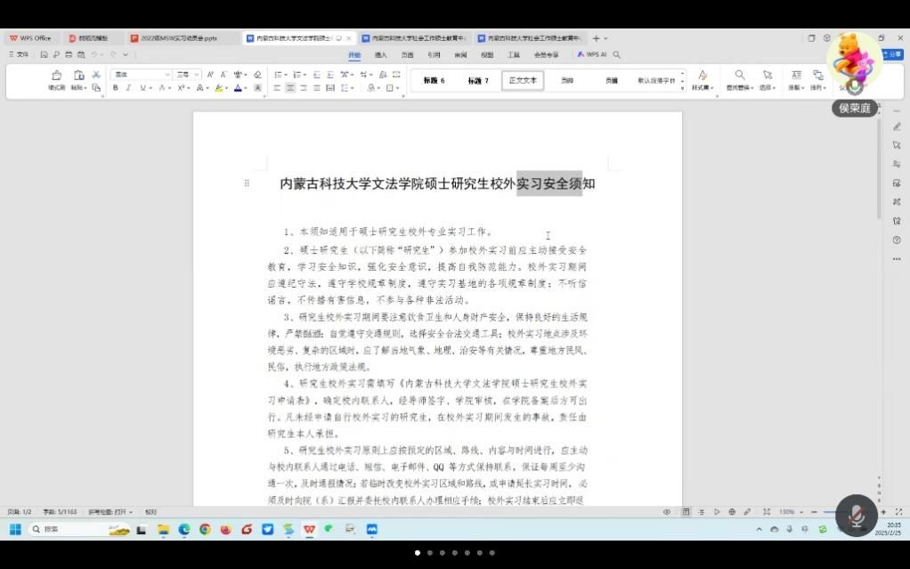 会议最后,侯荣庭老师寄语全体学生:“实习不仅是专业能力的试金石,更是个人成长的加速器。希望同学们在实习过程中能够有所感悟有所提升,为自己的研究生生涯交上满意的答卷。