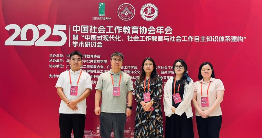 2025年8月23日至24日,由中国社会工作教育协会主办、华南农业大学公共管理学院承办的中国社会工作教育协会2025年会暨“中国式现代化、社会工作教育与社会工作自主知识体系建构”学术研讨会在广州成功召开。我院社会工作系师生侯荣庭副教授、张瑞博士,硕士研究生韦翠香陈南沐、任舒鑫应邀参加。