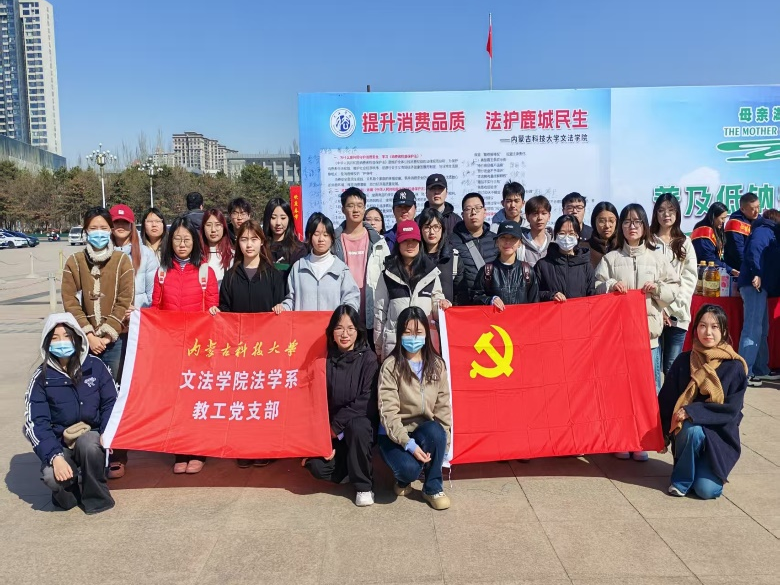 2026年3月15日上午,由包头市市场监督管理局、昆都仑区人民政府主办、昆都仑区市场监督管理局承办,昆都仑区发改委、昆都仑区卫健委、昆都仑区公安食药环侦大队等多单位共同参与的“提升消费品质,守护美好生活”线上线下系列宣传活动在阿尔丁广场隆重开幕。我院法学系教工党支部、法学专业24级、25级社会实践课程组积极参与,以“提升消费品质 法护鹿城民生”为主题,开展了一场沉浸式普法宣传活动,将法律知识送到市民身边。