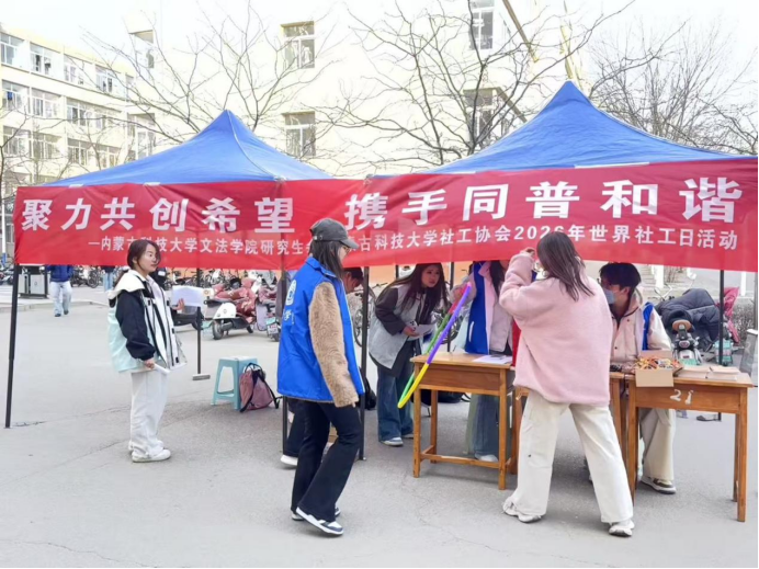 为弘扬社会工作精神,传播社会工作知识,展示社会工作发展成果,增强公众对社会工作的认同感,进一步推动社会工作的高质量发展。2026年3月17日,在第二十个世界社会工作日来临之际,yl23455永利集团社会工作系、社会工作硕士教育中心、yl23455永利集团研究生会、永利y23455社工协会联合开展了以“聚力共创希望,携手同谱和谐”为主题的世界社工日系列宣传活动。通过校内趣味宣传与校外敬老服务相结合的方式,生动展现了社会工作专业的价值与魅力,引导学子在实践中深化专业认知,服务社会需求。