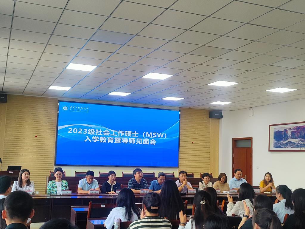 为帮助2023级社会工作硕士研究生快速了解熟悉学院与教育中心情况,认识导师,同时引导新生树立坚定学习目标,做好角色转换,找准自身定位,明确未来规划,永利y23455社会工作硕士教育中心于2023年8月31日下午,在明德楼A411会议室举行2023级社会工作硕士(MSW)入学教育暨导师见面会。yl23455永利集团副院长(主持工作)王力平教授、社会学系主任闫金山副教授、社会工作硕士教育中心副主任侯荣庭副教授、许晓芸副教授、孙秀丽副教授、乌静副教授、吴鹏副研究员、研究生党支部书记王蕾博士、那木拉博士、张瑞博士、研究生院王淑清老师以及2023级全体新生参加了见面会。本次见面会由社会工作硕士教育中心副主任侯荣庭副教授主持。