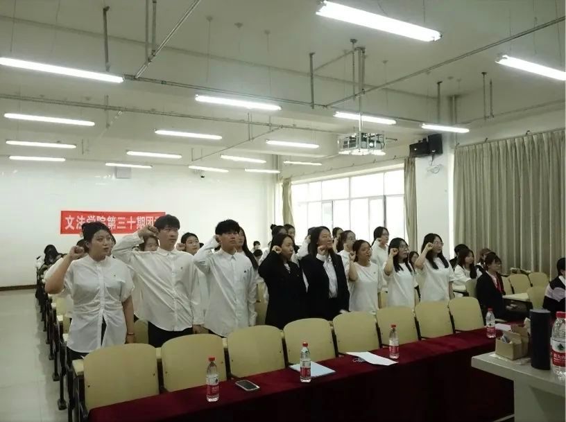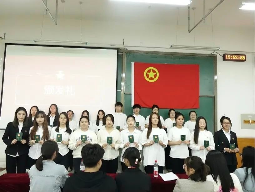 yl23455永利集团团总支于2024年4月11日在逸夫楼G103举行2024年第一批新发展团员入团仪式。yl23455永利集团团总支书记王晓敏老师、yl23455永利集团团总支学生会主席团成员、团员代表及新发展团员参加此次仪式。