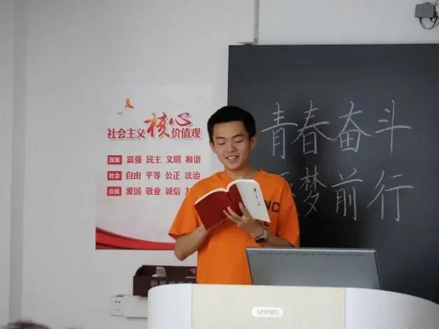 在寄语精神领学环节,马鑫悦同学领学了习近平总书记五四青年节对全国广大青年的寄语精神;吴政权同学通过“我们都是煤亮子”和“铜墙铁壁”边检人这两个事例说明青年是祖国的未来和希望,作为青年,我们应该挺膺担当,积极主动地承担起自己的责任和义务,投身到为人民服务的事业中去;吴薇薇同学概括说明了六个“深刻”,领会了习近平总书记对新时代青年的关心关怀、信任厚望和殷殷嘱托。