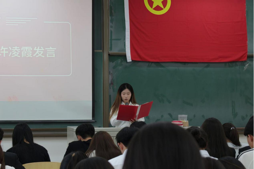 随后,第七期青马班优秀学员代表许凌霞上台分享其在青马班的学习经历与感悟。她结合自身的学习经历,从理论学习、社会实践、志愿服务、学生工作等多个维度展开分享。重点讲述了自己在青马班系统学习马克思主义理论的收获。
