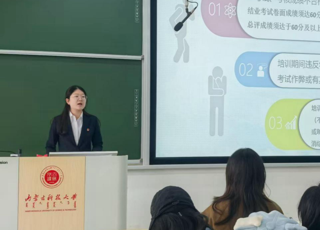 第四项议程,学院团校培训部部长白晓敏就团课学习相关事项进行提醒。她详细宣读并强调了团课学习纪律、考勤要求、课堂规范及考核标准等内容,为保障本期团课有序开展、提升学习质量筑牢了纪律根基。