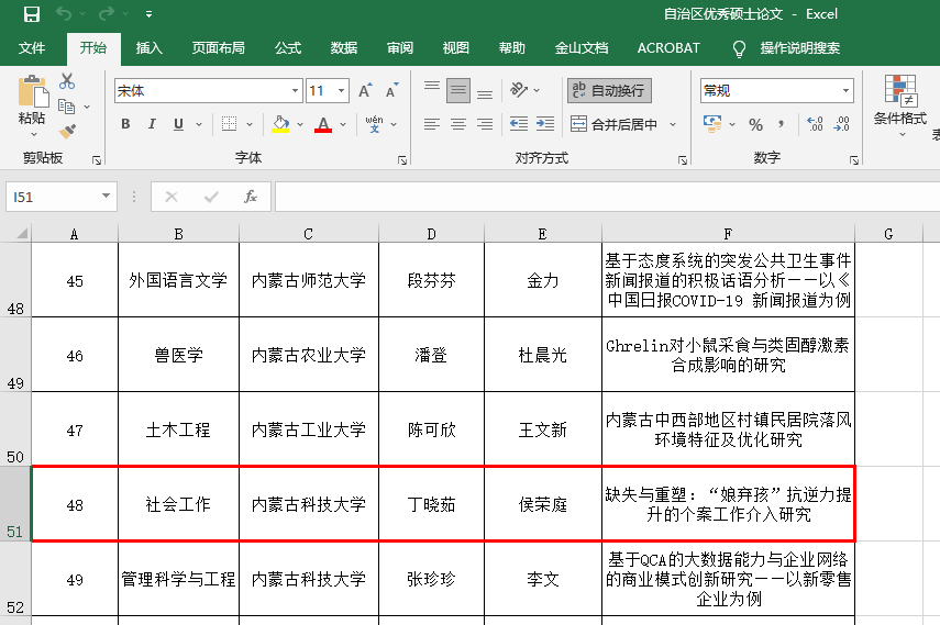 近日,由内蒙古自治区教育厅获悉,经内蒙古自治区学位委员会评审并公示,由我院侯荣庭副教授指导,2021届社会工作硕士毕业生丁晓茹同学撰写的学位论文《缺失与重塑:“娘弃孩”抗逆力提升的个案工作介入研究》荣获内蒙古自治区2021年度优秀硕士毕业论文,这是该文继获得永利y234552021年优秀硕士毕业论文后再度获奖,也是永利y23455社会工作硕士教育中心首届毕业生获得的殊荣。