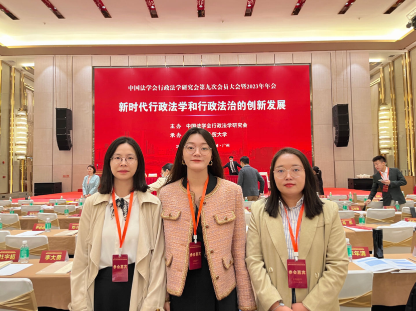 2023年11月18-19日,中国法学会行政法学研究会会员大会暨2023年年会在广州隆重召开。本次年会由中国法学会行政法学研究会主办、广东外语外贸大学承办,主题为“新时代行政法学和行政法治的创新发展”。全国人大常委会、中国法学会、最高人民法院、最高人民检察院、司法部、广东省委政法委等部门的领导,来自北京大学、清华大学、中国人民大学、中国政法大学、中共中央党校(国家行政学院)、中国社会科学院、上海交通大学、武汉大学、西南政法大学、华东政法大学、西北政法大学、中南财经政法大学、广东外语外贸大学等高校和科研机构以及中国法律服务香港公司、北京观韬中茂律师事务所等法律服务机构的专家学者等700余人齐聚一堂,共襄盛举。我院法学系教师何垚淼、张璐、李小芳参加了会议。