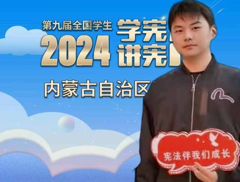 2024年10月19日上午,第九届全国学生“学宪法 讲宪法”内蒙古自治区决赛暨国赛选拔赛在内蒙古大学开幕。全区学生“学宪法 讲宪法”自治区赛分为线上复赛和线下决赛两个阶段进行。第一阶段为线上复赛,9月下旬全区12个盟市、42所高校共144名选手参加了选拔。我院2023级法学2班韦志恒同学以优异成绩成功晋级第二阶段线下决赛。