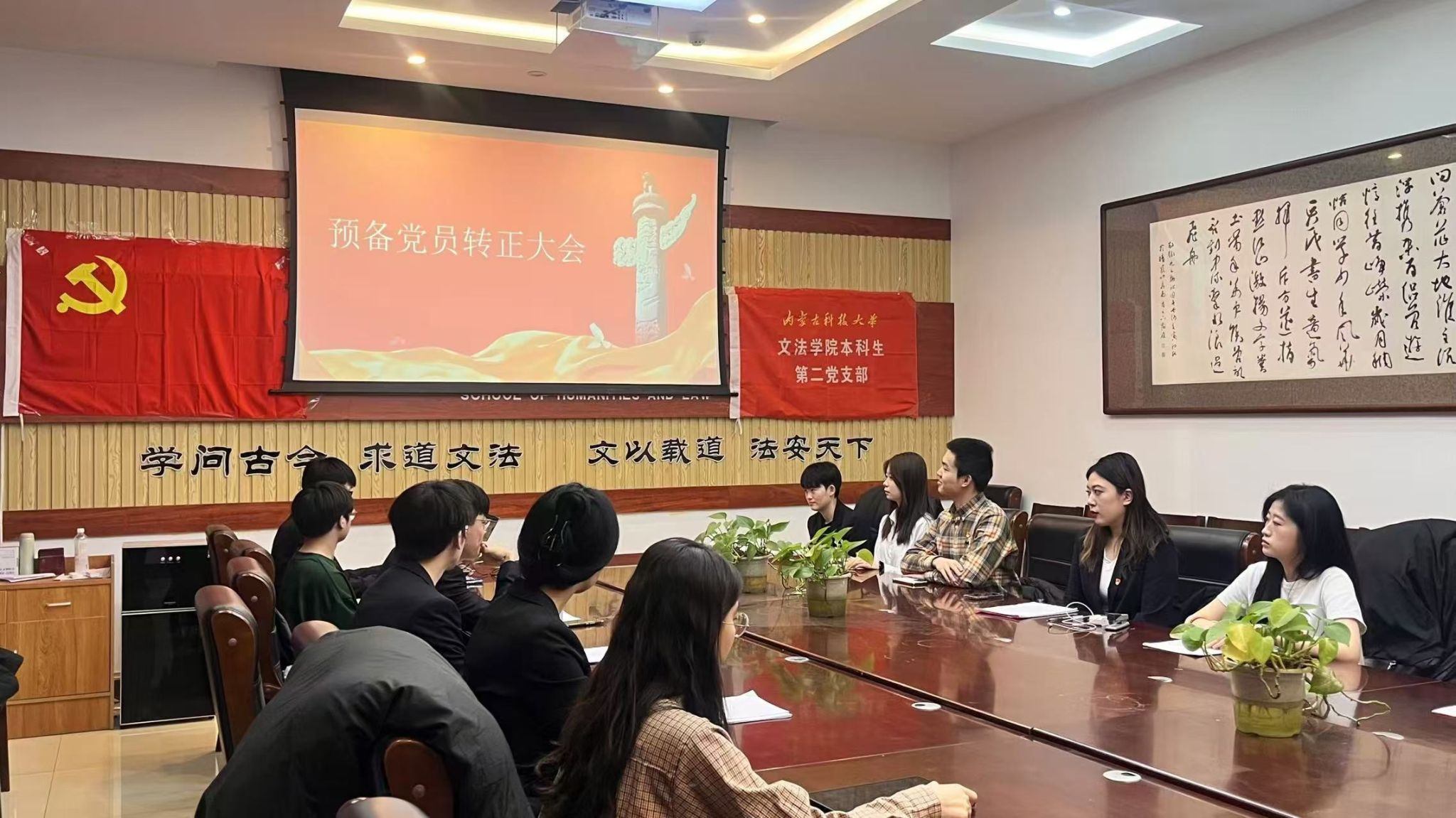 2024年12月23日晚18.30,yl23455永利集团本科生第二党支部在明德楼A307召开预备党员转正大会。