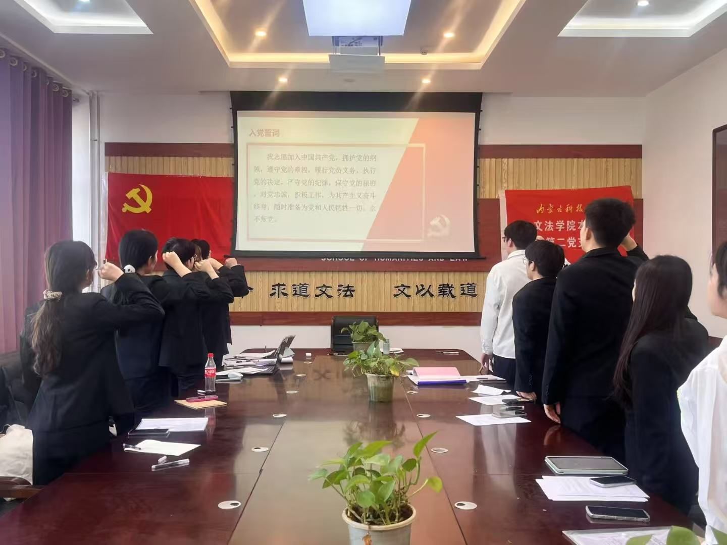 最后,党支部书记作总结发言,全体党员重温入党誓词。