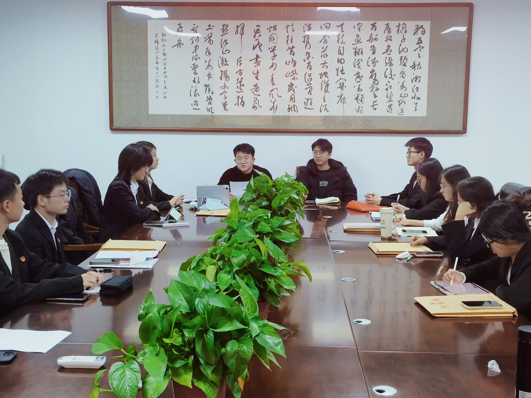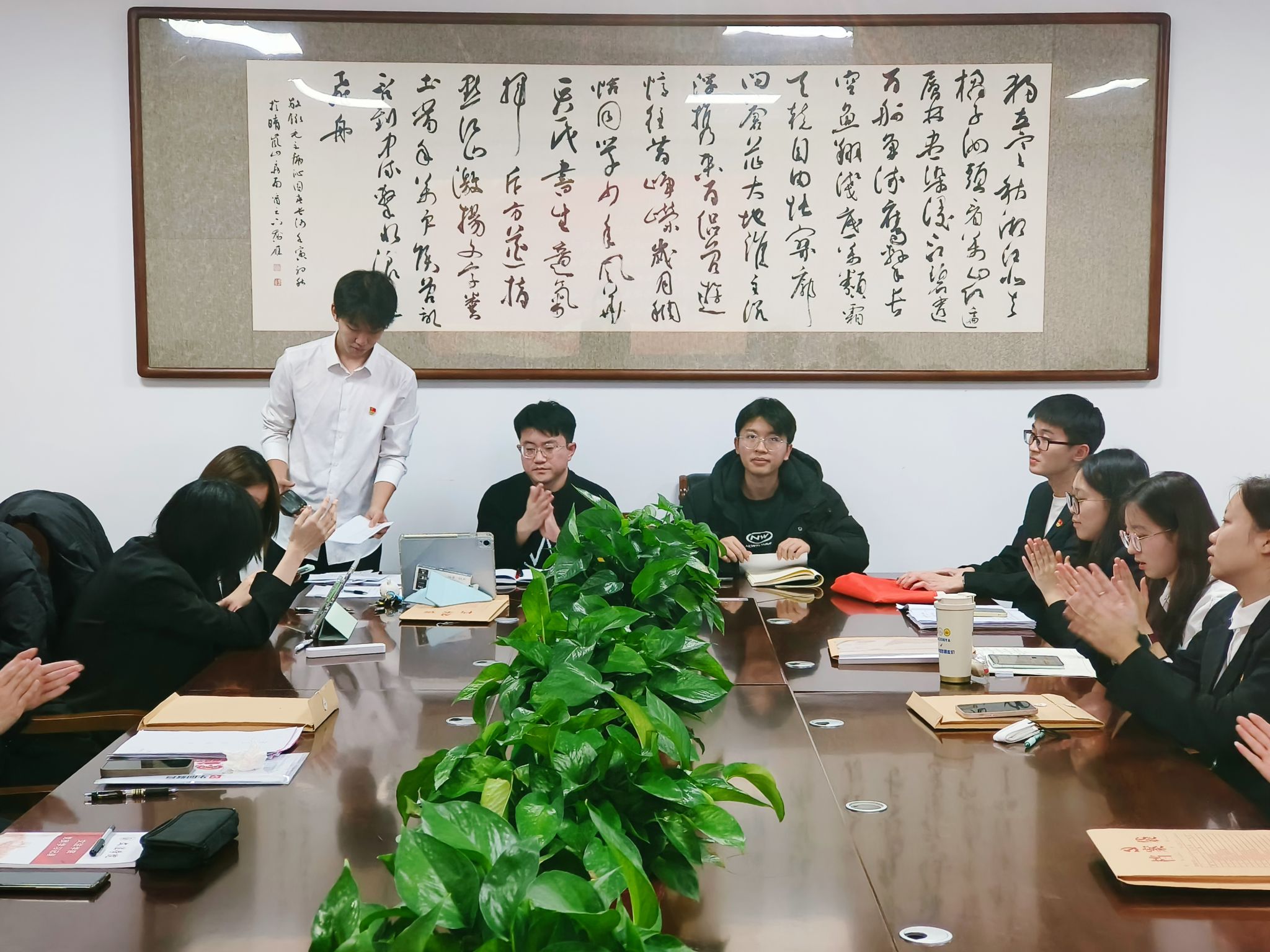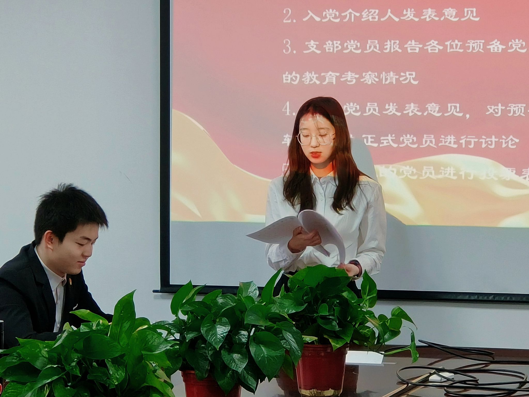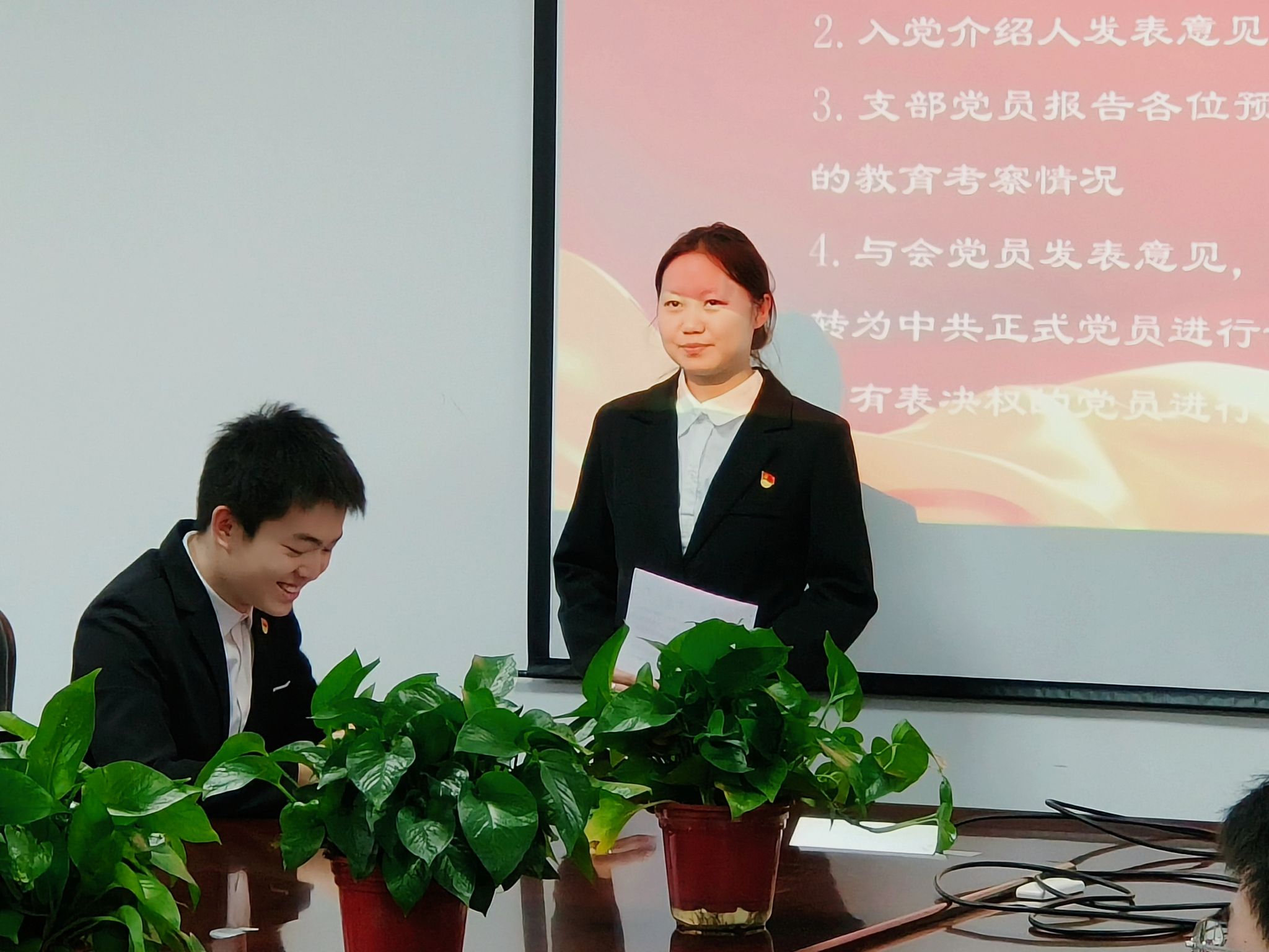 2025年12月15日下午16:30,yl23455永利集团本科生第二党支部于文华楼B1503召开党员大会,讨论预备党员转正事宜并举行新发展预备党员入党宣誓仪式。