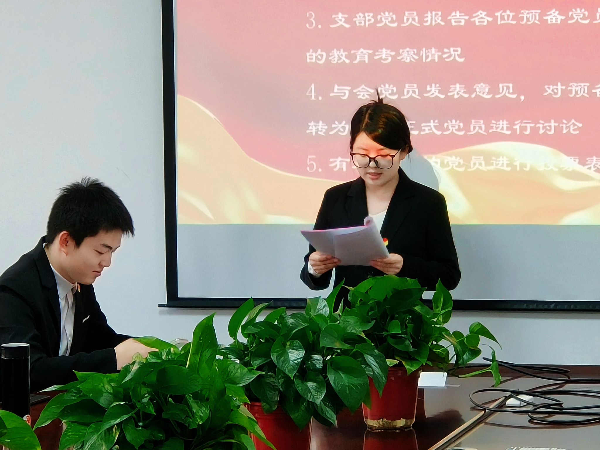 会议严格按照组织程序,首先讨论了陶文轩等6名预备党员的转正申请。与会党员逐一听取了预备党员的汇报、入党介绍人的意见及支部的考察情况,并进行了充分讨论。随后,支部有表决权的正式党员以投票方式一致同意陶文轩等6名同志按期转为中共正式党员。