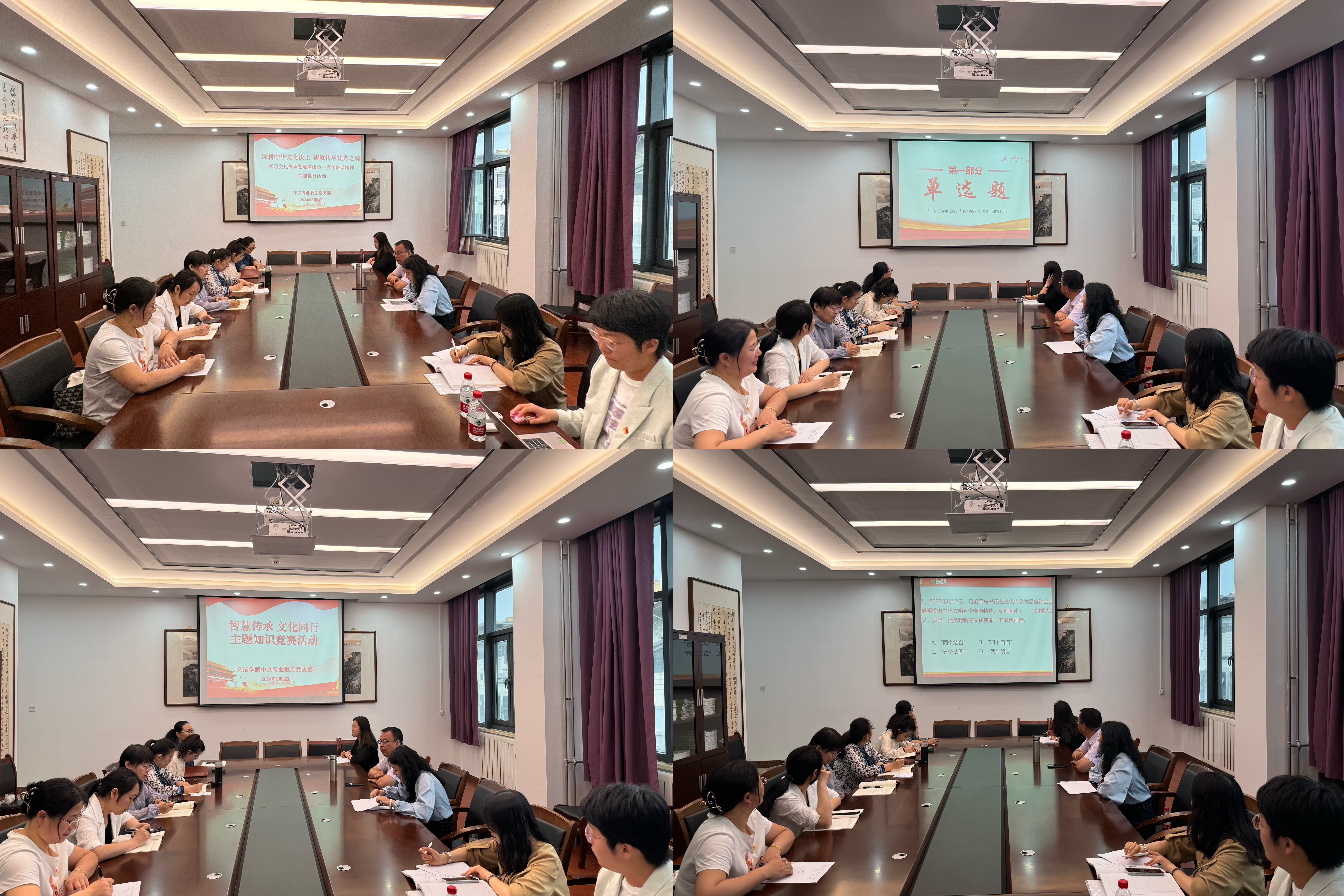 文化传承发展座谈会召开一周年之际,中文专业教工党支部不仅回顾了习近平总书记重要讲话精神,同时展望了未来发展蓝图。还围绕本次学习主要精神举办了一场别开生面的知识竞赛,以持续激发师生对中华文化的热情与探索精神。