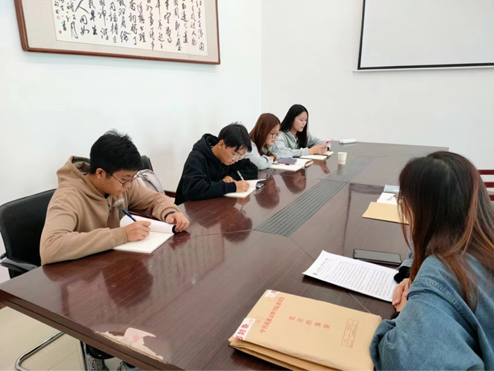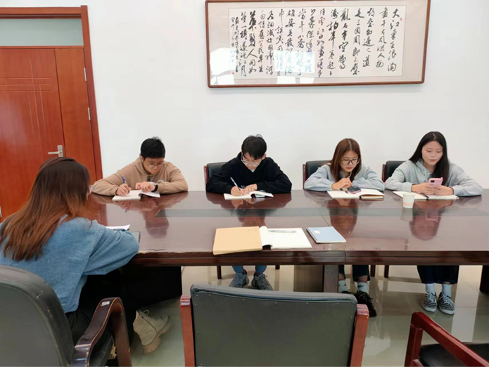 根据校党委组织部的统一部署,及学院党委的相关要求,10月12日学科教学(语文)研究生党支部全体党员同志于明德楼A305开展了深入学习贯彻习近平总书记近期重要讲话致信回信精神专题党课学习交流会。入党积极分子刘晓晨、江威铭列席会议旁听。