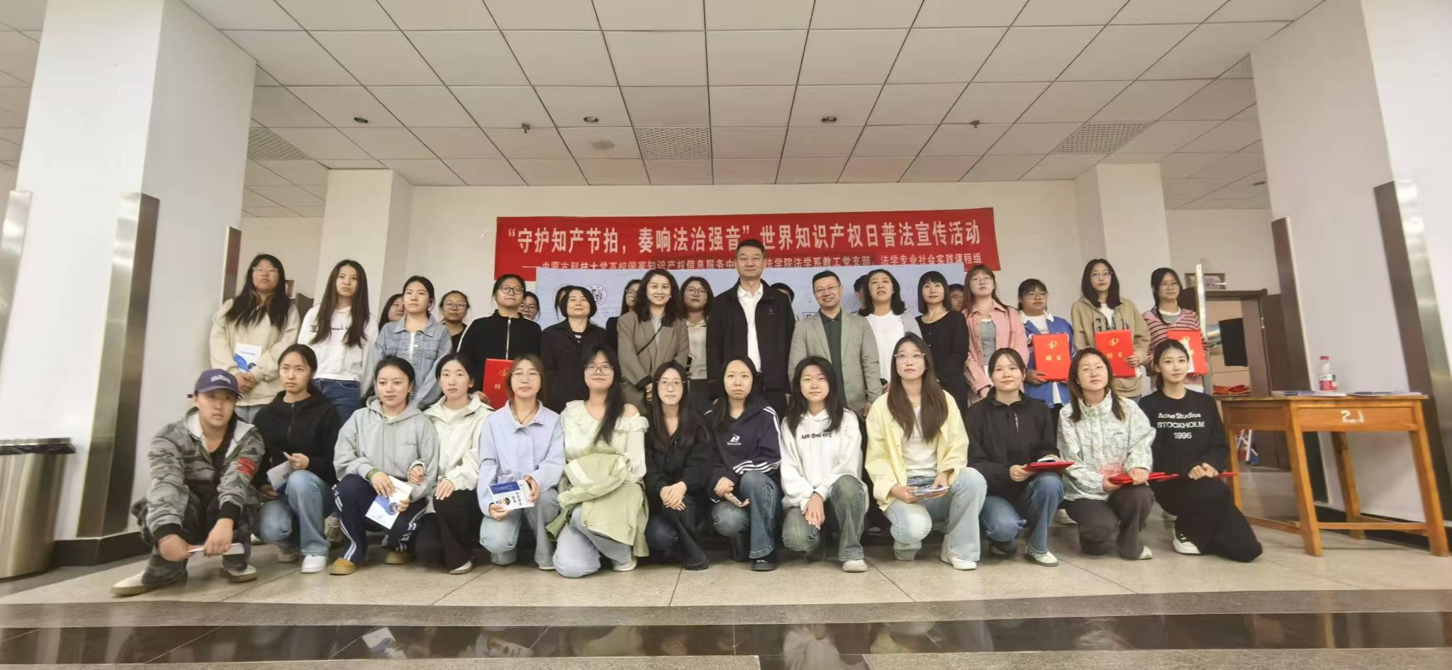 2025年4月26日上午,永利y23455图书馆二楼B206报告厅内掌声阵阵,一场主题为“守护知产节拍 奏响法治强音”的世界知识产权日普法宣传活动在此拉开帷幕。本次活动由包头市知识产权保护中心、永利y23455高校国家知识产权信息服务中心、yl23455永利集团联合主办,由法学系教工党支部及法学专业社会实践课程组承办。活动以“普法+互动”为主线,共设置六大特色环节。法学专业90余名学生化身“普法使者”,与全校师生共同开启了一场兼具知识性与趣味性的知识产权保护之旅。