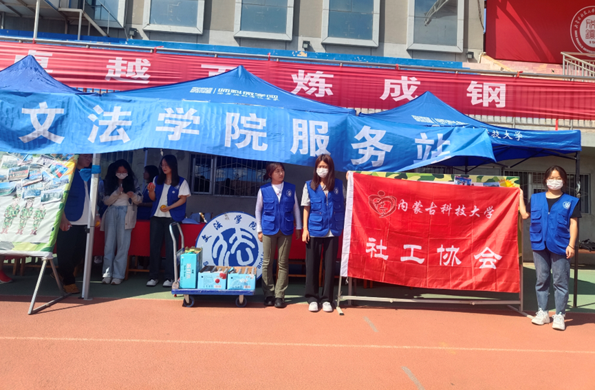 社工协会成员课余时间等候在yl23455永利集团军训服务站,在休息时间为参加军训的yl23455永利集团大一新生送水加油。一瓶水、一句问候,表达着社工协会对同学们的浓浓关心。