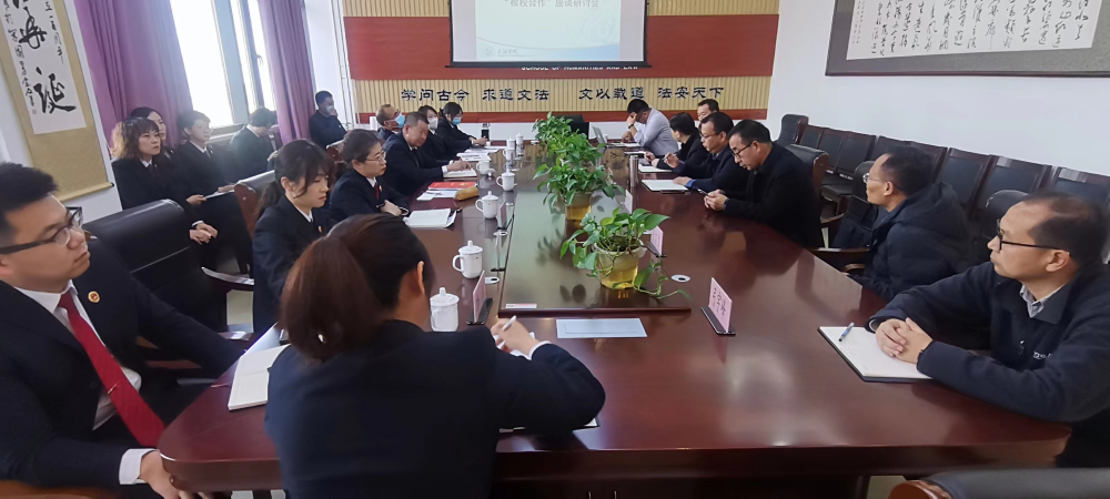 2023年3月9日下午,yl23455永利集团、包头市九原区人民检察院在明德楼东A307就继续深化“校检合作”举办座谈会。九原区检察院副检察长石峻升、检委会专职委员杨季峰、第二检察部主任,杨玲玲、第三检察部主任姜旭、第二检察部副主任陈萌、政治部副主任魏玉静、办公室副主任李洋等一行15人到会参加座谈。yl23455永利集团党委书记刘玉明、副书记副院长唐国桥、副院长杨德桥、法学系教工党支部书记、系主任弓宇峰,副主任兼实验室主任王彦,法学系教授韩弘力、张万军,副教授郝振明、史炜、李诚予等参加座谈会。座谈会由yl23455永利集团副院长杨德桥教授主持。