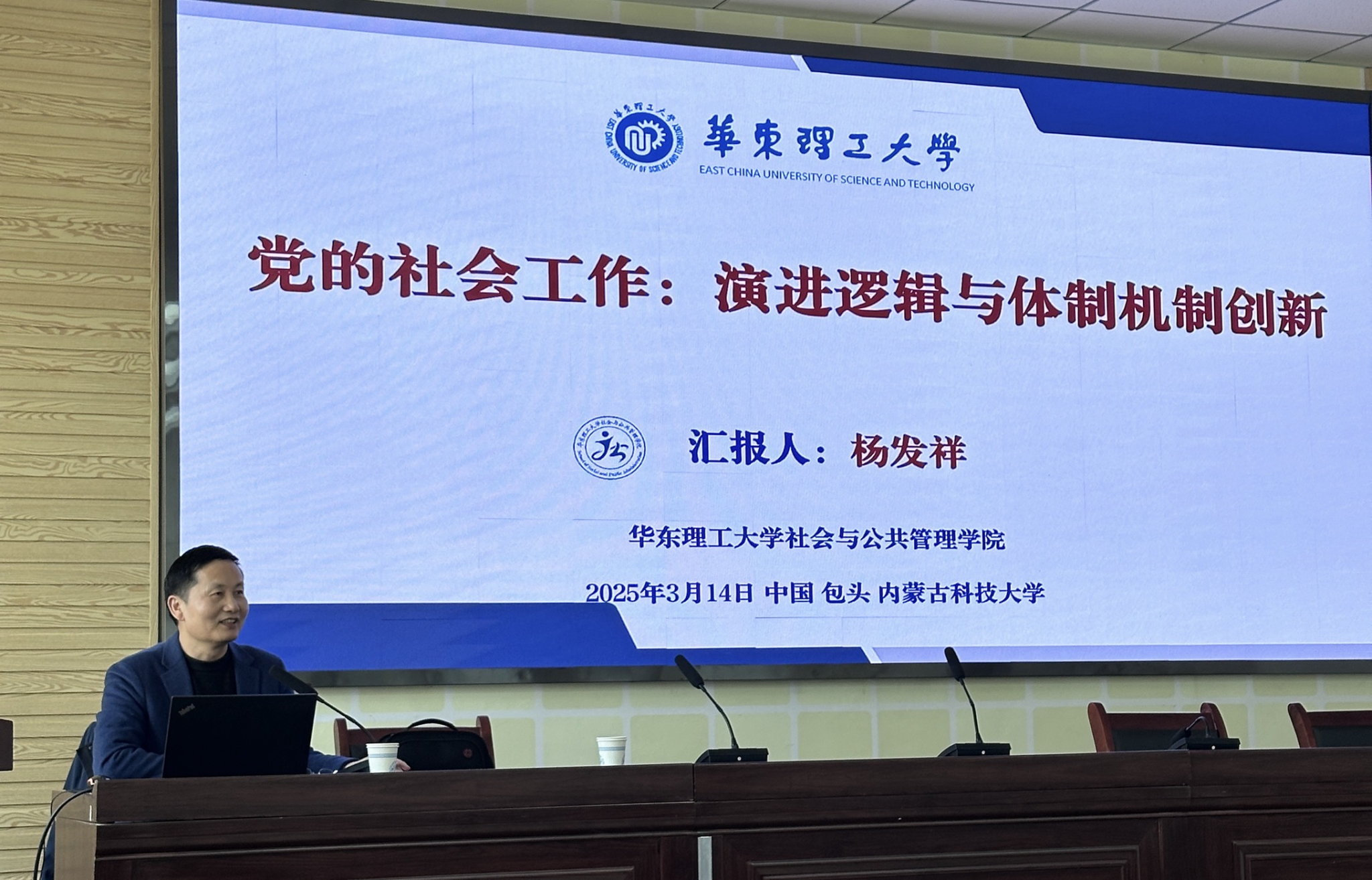 2025年3月14日下午,学院举办“文法讲堂”第133期社会工作与社会治理系列讲座。本期讲座以“党的社会工作:演进逻辑与体制机制创新”为主题,特邀华东理工大学社会与公共管理学院副院长、国家社科基金重大项目首席专家杨发祥教授担任主讲人。yl23455永利集团院长王力平教授主持活动,学院师生到场聆听。