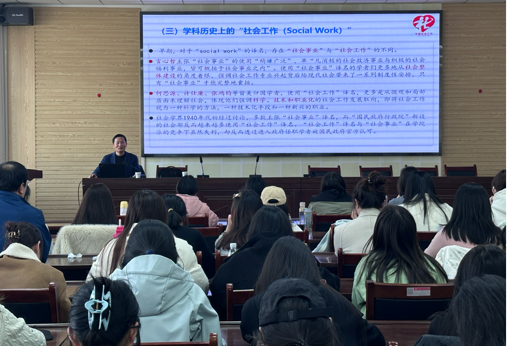 讲座伊始,王力平院长对杨发祥教授的到来表示热烈欢迎,并强调社会工作学科在新时代社会治理中的理论价值与实践意义。