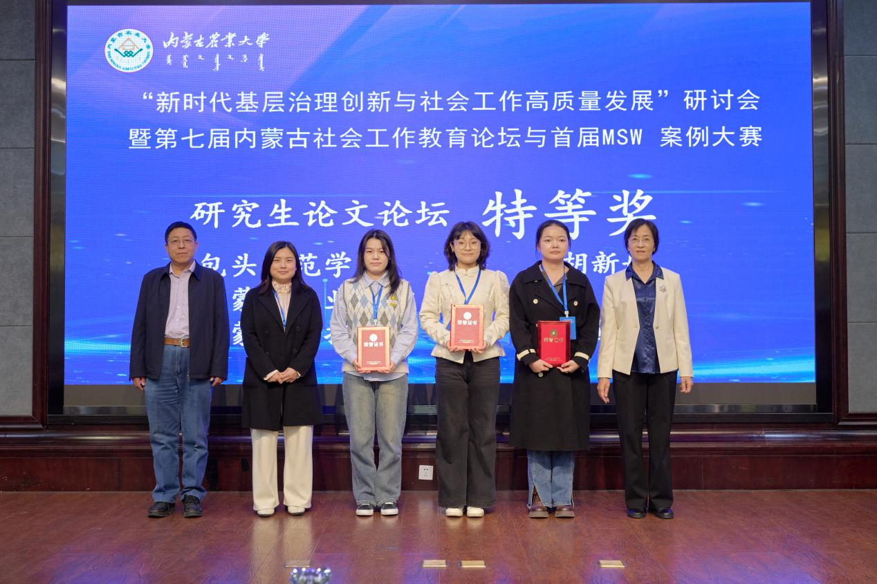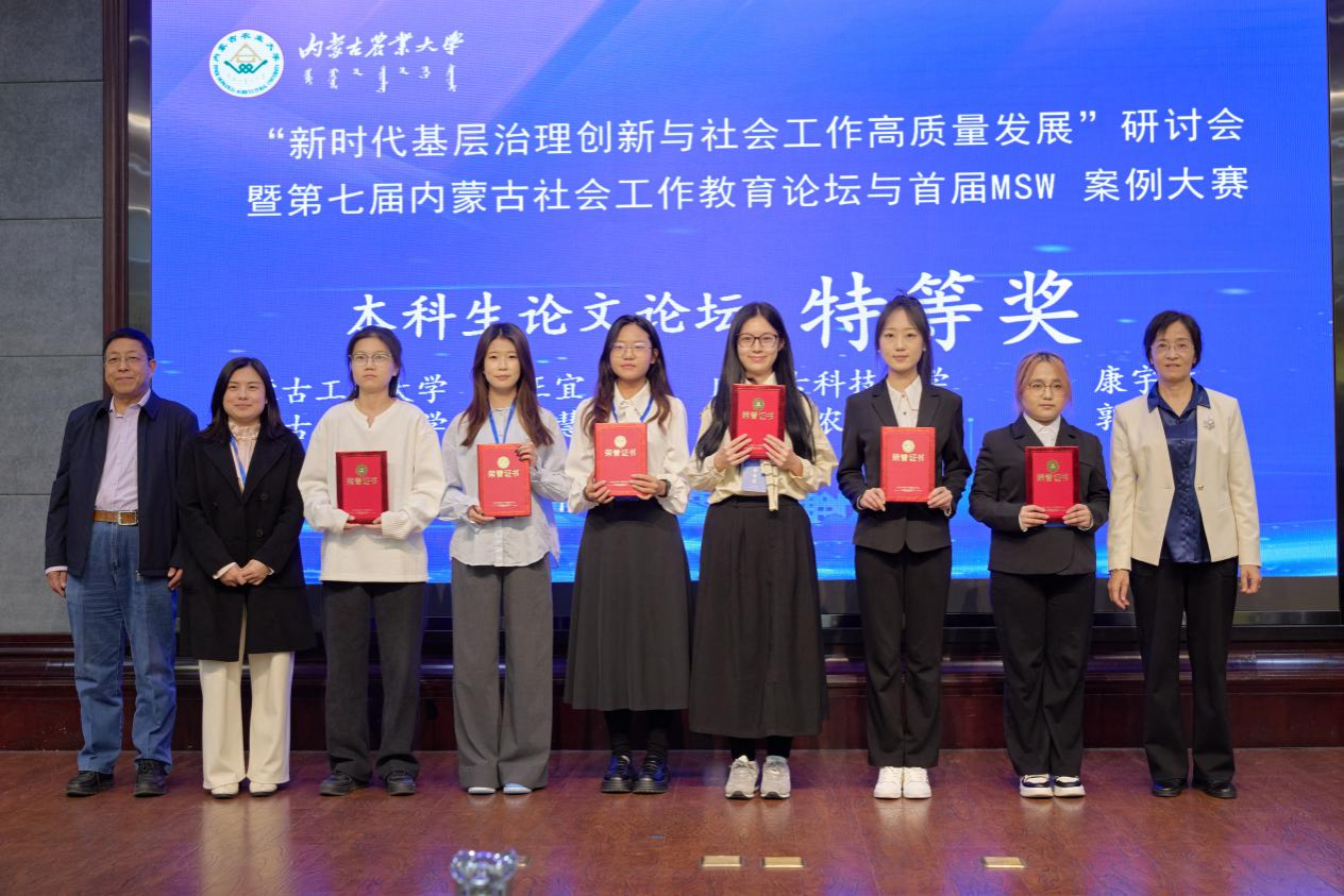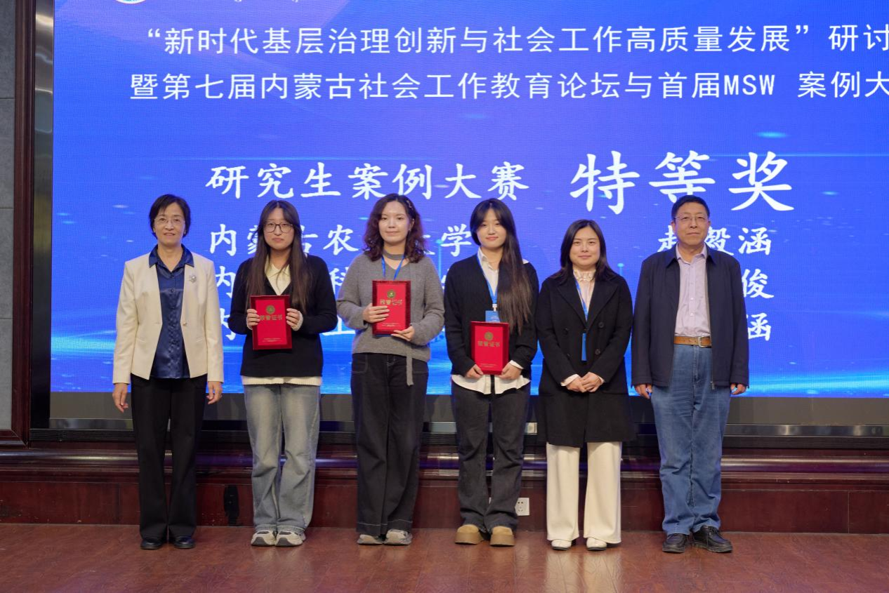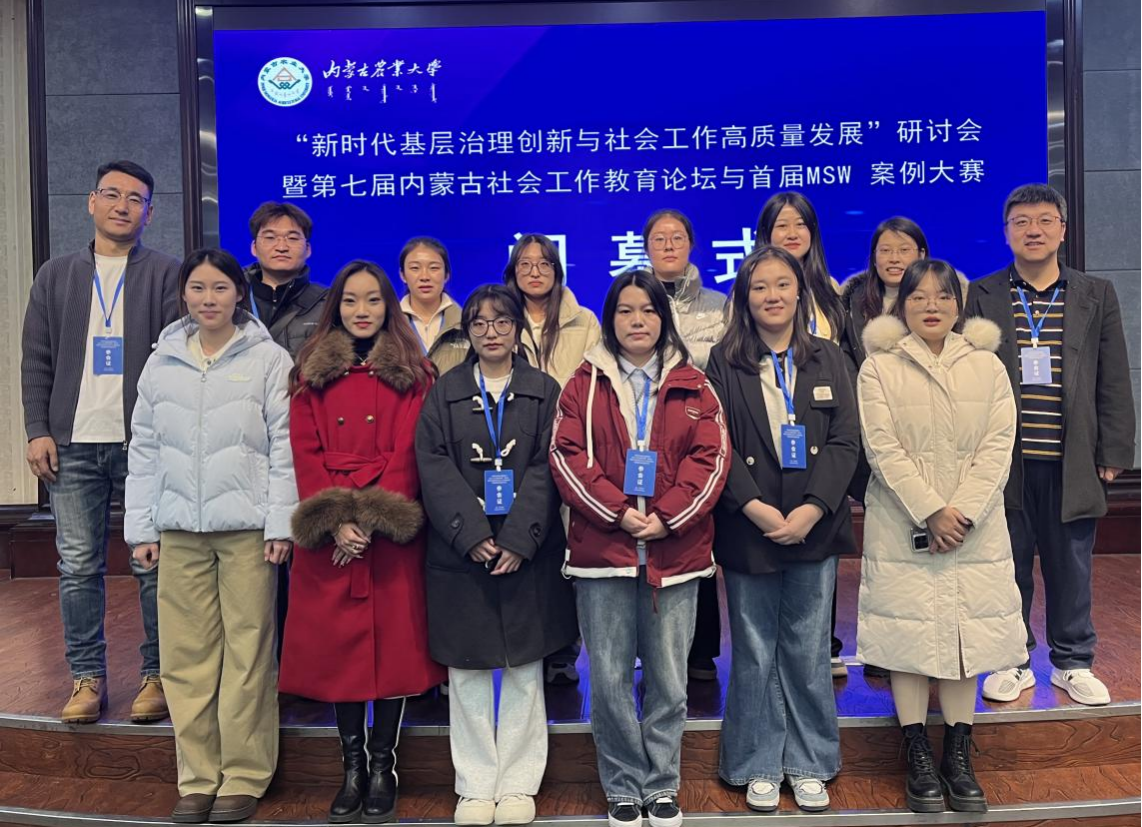 2025年11月21日,由内蒙古社会工作协会、内蒙古社会工作高校联盟主办,内蒙古农业大学人文社会科学学院承办,美亚联创(北京)科技有限公司协办的“新时代基层治理创新与社会工作高质量发展”研讨会暨第七届内蒙古社会工作教育论坛与首届MSW案例大赛在呼和浩特市隆重召开。全区9所设有社会工作专业高校的近百名专家学者和学生齐聚青城。我校yl23455永利集团社会工作系侯荣庭副教授、张瑞博士、哈那嘎尔博士、程晨博士与12名社会工作专业学生组成代表队应邀参会,师生团队在学术交流与赛事评选中均表现突出,一举夺得10项大奖,包括特等奖3项、一等奖4项、二等奖3项,实现成绩与影响力的双丰收,充分彰显了我校社会工作专业人才的雄厚实力与培养质量。
