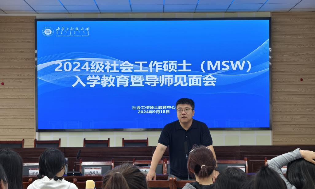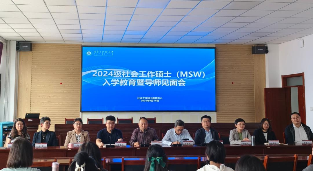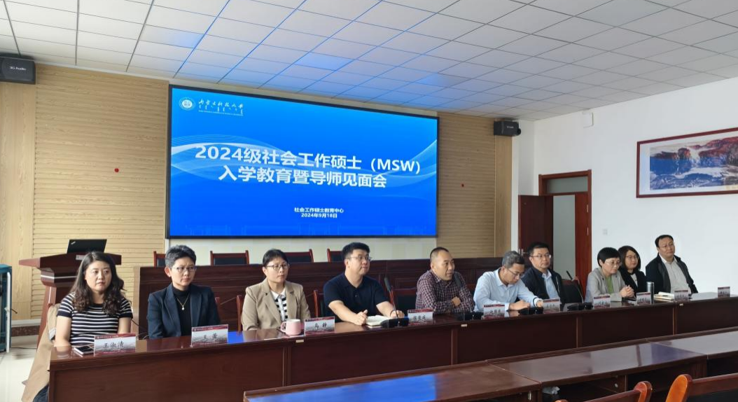 立而暑将尽,秋来见风华。初秋时节校园迎来一张张朝气蓬勃的笑脸,焕发生机。为增进新生对学院及专业的了解,激励学生以饱满的热情和积极向上的精神状态投入到新学期的学习生活中,9月18日下午,永利y23455社会工作硕士(MSW)教育中心于明德楼A411会议室举行2024级研究生入学教育暨导师见面会。见面会由社会工作硕士教育中心副主任侯荣庭副教授主持,yl23455永利集团院长、社会工作硕士(MSW)教育中心主任王力平教授、经济与管理学院院长赵周华教授、社会学系主任闫金山副教授、许晓芸副教授、乌静副教授、孙秀丽副教授、研究生党支部书记王蕾博士、那木拉博士、研究生院王淑清老师以及2024级全体社会工作硕士新生参加了本次见面会。
