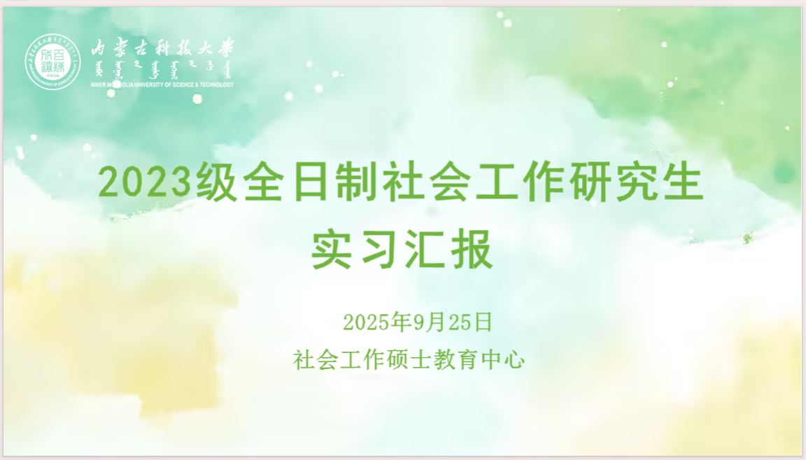 为深入总结2023级社会工作硕士研究生的实习实践情况及专业收获,检验实习成果,促进实践知识生产,强化和改进实习工作,2025年9月25日,永利y23455社会工作硕士教育中心于明德楼A302、A402举行2023级硕士研究生专业实习汇报会。参加本次汇报会的老师有侯荣庭副教授,王蕾博士、程晨博士、张瑞博士、哈那嘎尔博士、矫冬梅博士以及2023级全体硕士研究生。