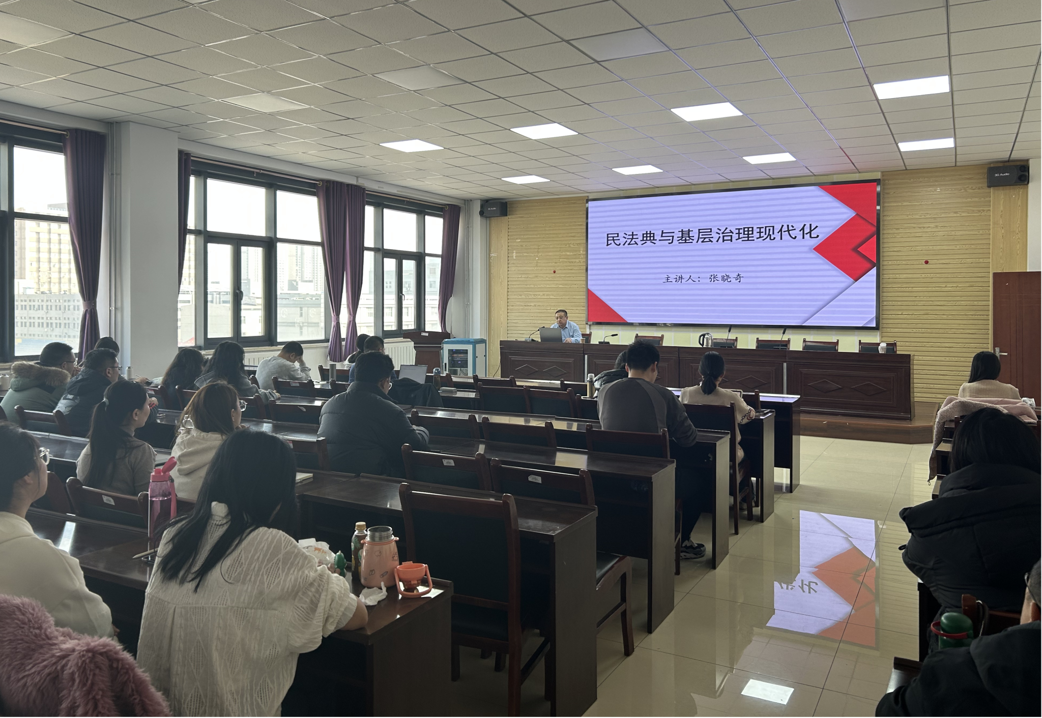 为强化学生法治思维,引导学生关注法律与社会治理的互动关系,3月9日上午,yl23455永利集团特邀中共包头市委员会党校法学教研室教师张晓奇老师,于明德楼A411开展《民法典》与基层治理创新专题讲座。讲座聚焦民生热点问题,剖析法律条文在化解基层矛盾、保障群众权益中的实际应用。会议由李诚予副教授主持。