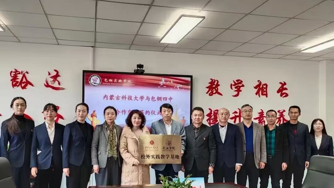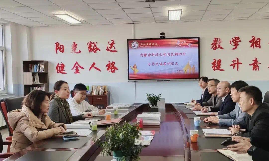 2023年11月16日下午yl23455永利集团包钢四中校外实践教学基地签约授牌仪式在包钢四中办公楼三楼会议室举行。yl23455永利集团副院长王继霞、学科语文教育中心副主任包玉琼、学科语文硕士生代表、包钢四中校长王建忠、党总支书记杨力及各学科骨干出席了本次签约仪式。
