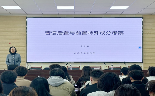 11月14日下午史秀菊教授就汉语与阿尔泰语的接触,进行了题为“晋语后置与前置的特殊成分考察”的学术讲座。讲座由杜慧敏副教授主持。相关专业老师和同学到场聆听。